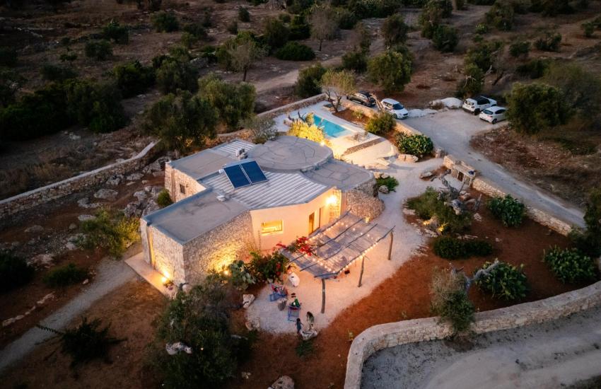 La zona esterna è arricchita da una bellissima piscina incastonata tra gli ulivi e la natura, ed un'aria solarium unica alle spalle del trullo.