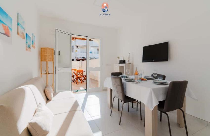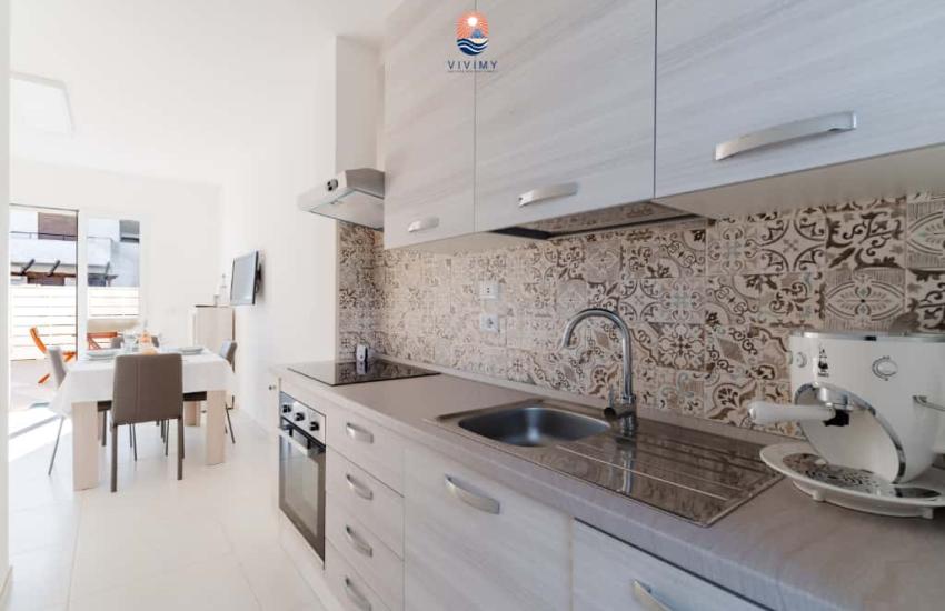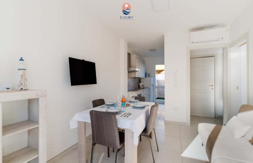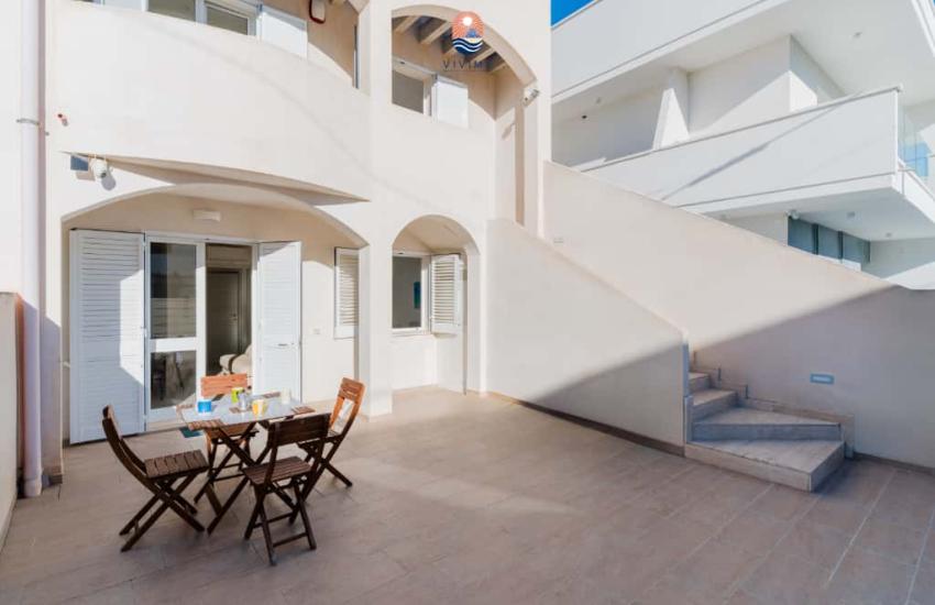 SERVIZI PRESENTI: aria condizionata in ogni camera, lavatrice, forno a microonde e lavastoviglie in ciascun appartamento, spazio esterno attrezzato (solo al piano terra), per trascorrere momenti conviviali all’aria aperta.