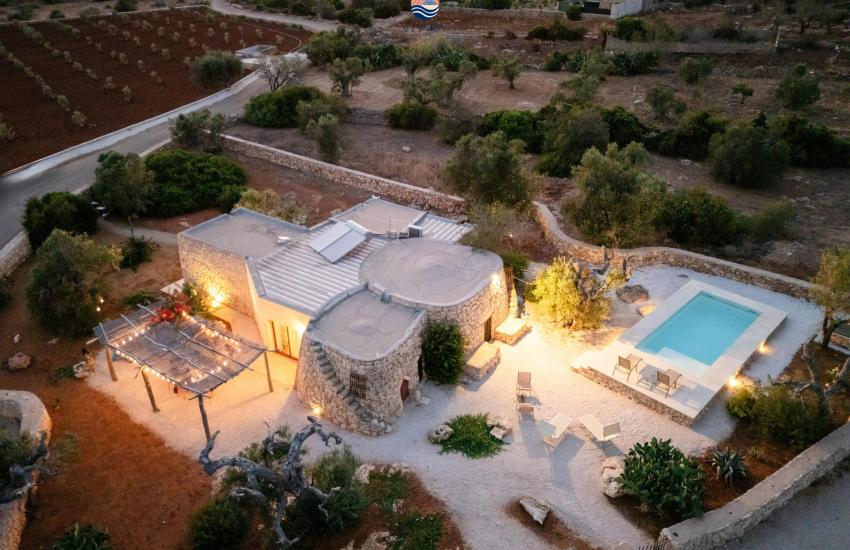 La zona esterna è arricchita da una bellissima piscina incastonata tra gli ulivi e la natura, ed un'aria solarium unica alle spalle del trullo.